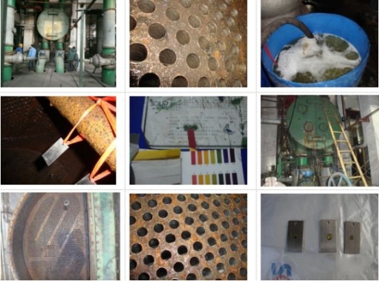 冷凝器和蒸发器是冷水机组的核心部件,其散热效果直接影响机组的制冷性能。水冷式冷凝器的冷却水由于是开式的循环回路,一般采用的自来水经冷却塔循环使用。当水中的钙盐和镁盐含量较大时,易分解和沉积在冷却水管上而形成水垢,影响传热。